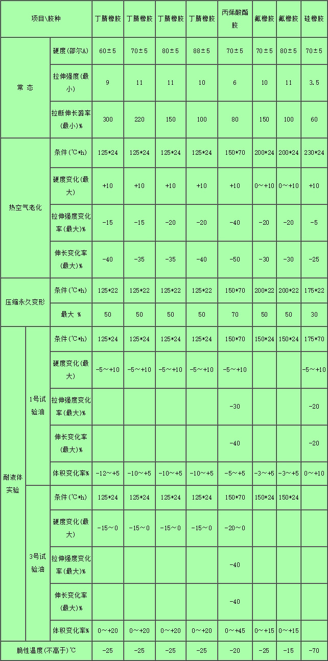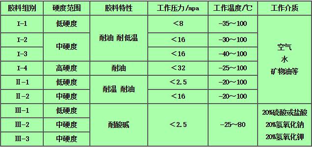 1、各種膠料的特性及工作條件下應(yīng)符合下表規(guī)定: